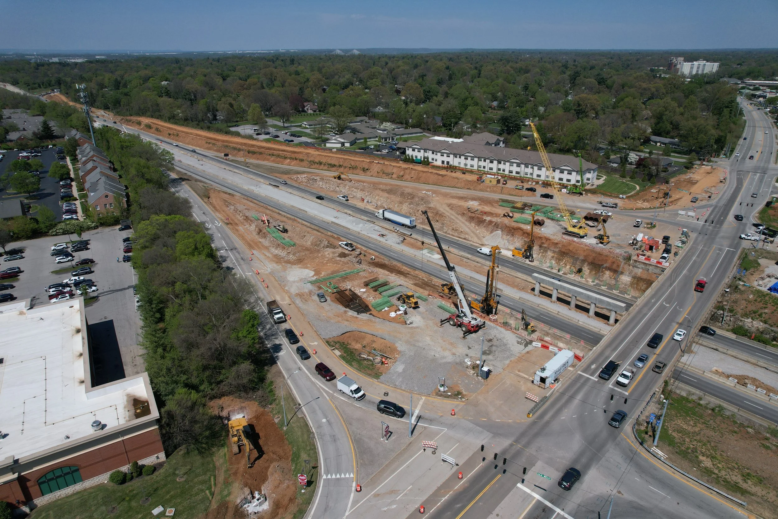 Originally initiated with a Planning Study in 2011, the project has grown into a $130 million investment designed to improve safety, mobility, and long-term corridor performance. Key features include the construction of a Single Point Urban Interchange (SPUI), coordinated with a new VA Hospital in the southeast quadrant, as well as the widening of I-264 from Westport Road to I-71 and the addition of sound walls throughout much of the project area.